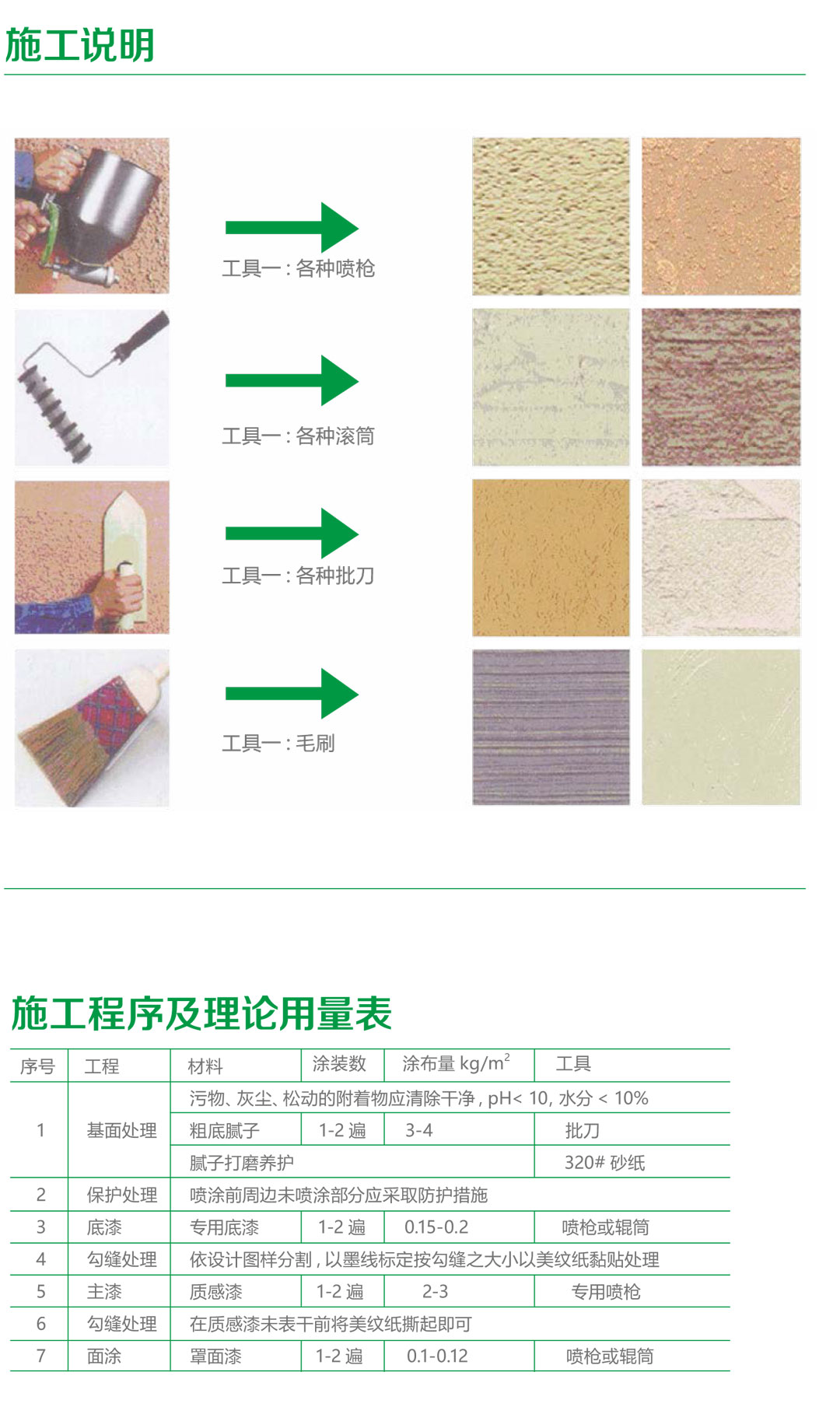 耗 漆 量 :理論值— 2-3kg/平方( 實際耗漆量會因施工方法、基層表面干硬程度和粗糙度及施工環(huán)境而有差異 )